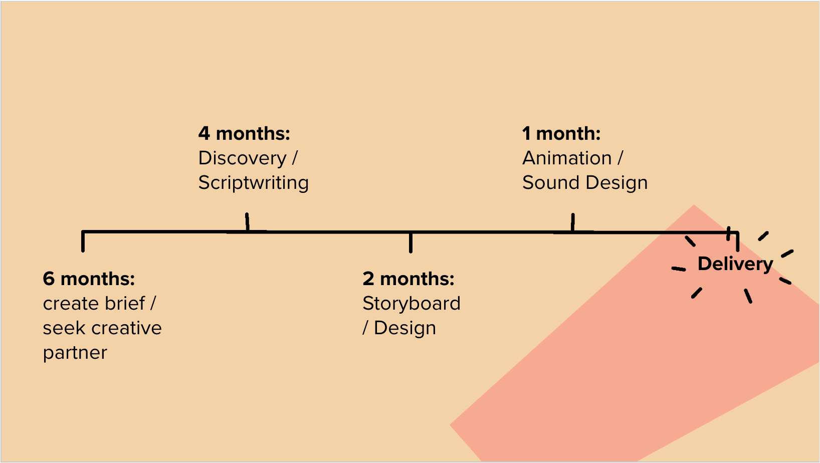 Getting the ball rolling five or six months before you need your animation to ‘go live’ means you’ll be setting yourself and your creative partner up for success.